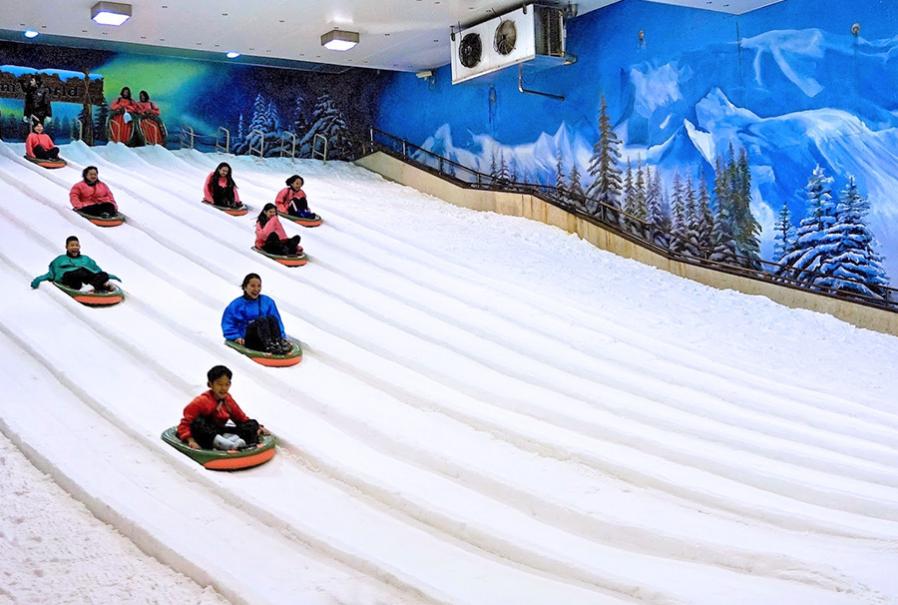 Snow town is not only an exciting escape from Bangkok’s heat but it actually makes you miss the hot weather after you spend few minutes in freezing temperature inside the huge room full of characters of “Ice Age” a cute igloo and a big ice slide. While shivering with cold in the snow town you can take cute photographs with life-size mammoths and polar bears as well as challenge your friends on the ice slide.