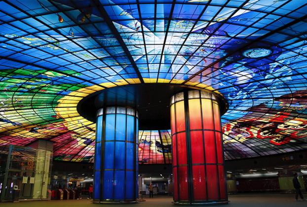 The Formosa Boulevard Station in Kaohsiung is the most stunning metro station you will ever see! It is best known for its Dome of Light, the world’s largest work of glass art. This breathtaking stained-glass ceiling is made of 4,500 colorful panels and tells the story of human life in four different themes: Water, Earth, Light, and Fire. It is a commemoration to the heroes who helped make political changes in Taiwan.