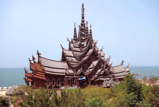 This architectural marvel is iconic and gives visitors a truly unique experience. The structure is made from teak wood. The intricate design gives the building the appearance of a temple or palace. Indeed, it is neither. Its construction was commissioned by a local business leader. The intention was to build a place not aligned to one specific religion devoted to the appreciation of art, culture, faith, and philosophy. The astounding attention to detail in the carvings shows Thai craftsmanship at its very best. Since the wood is untreated, it cannot withstand the elements permanently. Older parts of the sanctuary must be replaced in a continuous cycle of renewal.